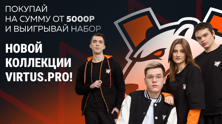Прокачай свой гардероб фирменным мерчем Virtus.pro! HOT конкурс — самое время показать свою поддержку команде и выиграть эксклюзивный набор с автографами состава VP по CS!
