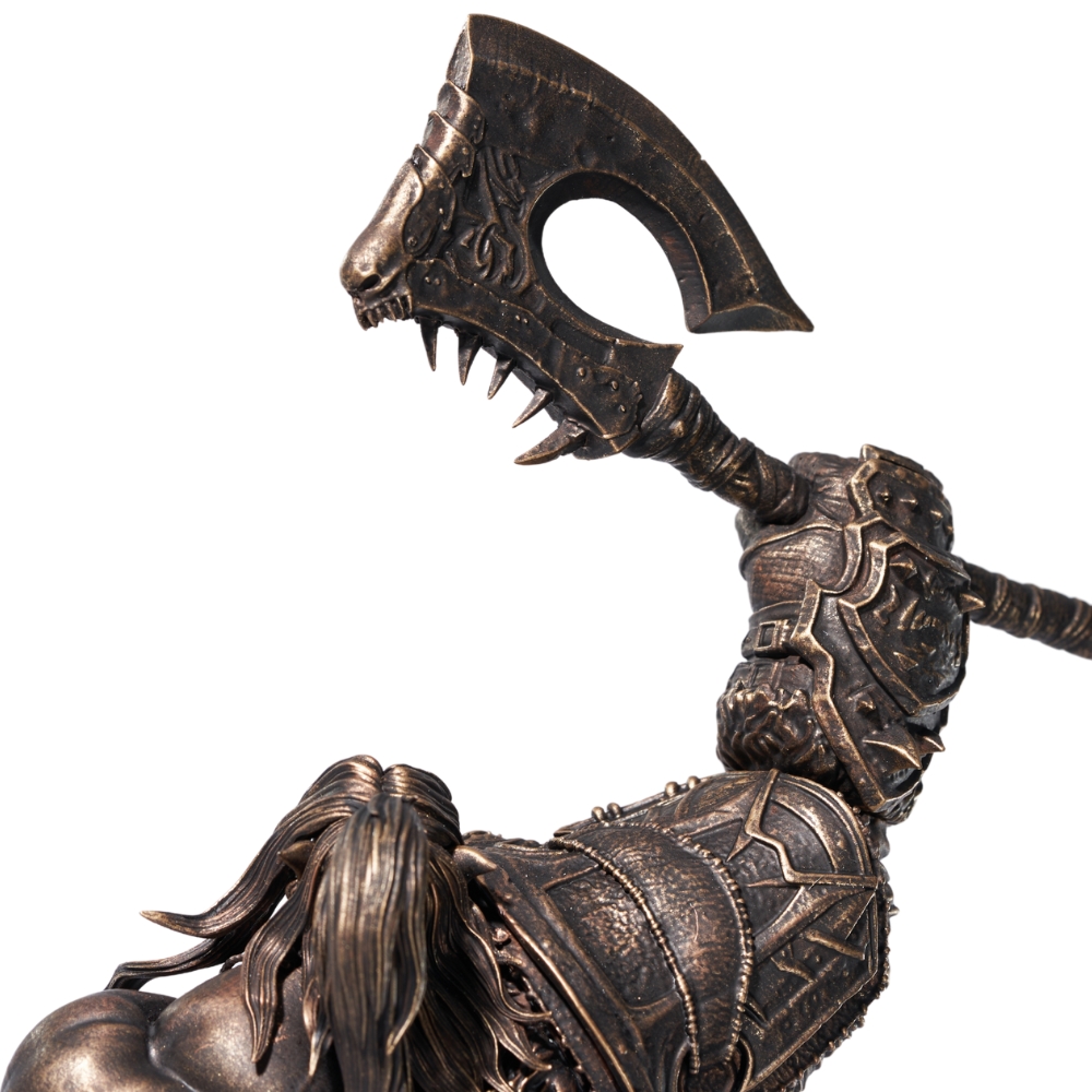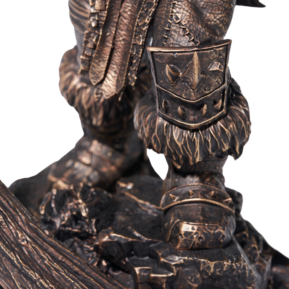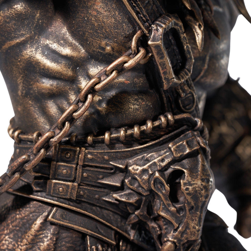 От шрамов, которые рассказывают о бесчисленных битвах, до замысловатых доспехов и свирепого выражения лица - каждая деталь выполнена с уважением к богатому наследию Warcraft. Статуя стоит на разрушенном войной основании, напоминая о разрушенных землях Дренора и пропитанной кровью земле Ясеневого леса.
