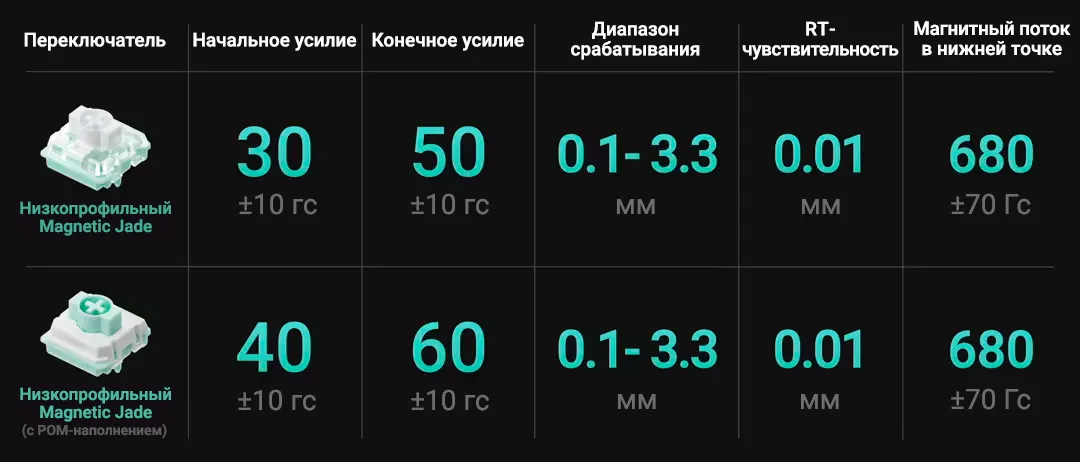 Air60 HE: самое быстрое срабатывание и самый быстрый отклик. Магнитные переключатели позволяют регулировать точку срабатывания в диапазоне от 0,1 мм до 3,3 мм, где 0,1 мм - минимальное расстояние срабатывания. Отсутствие металлических контактов дают более плавную работу и служат от 50% до 100% дольше, чем традиционные механические переключатели. Новый совершенный микроконтроллер обеспечивает настоящую частоту опроса 8000 Гц, сокращая задержку до микроскопических 0,1 мс, превосходя в этом все известные игровые клавиатуры.