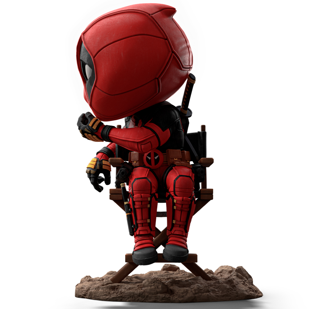 Эта фигурка создана по мотивам долгожданного фильма «Дэдпул и Росомаха» (премьера — 25 июля 2025 года). Дэдпул изображён в фирменной позе: он небрежно развалился в раскладном режиссёрском кресле, с ироничной ухмылкой смотрит прямо на вас — словно знает, что вы уже готовы нажать «купить». Всё в нём кричит: «Я — центр вселенной!» Хотя на самом деле его почти ничто не удивляет… разве что появление Росомахи в жёлтом костюме!