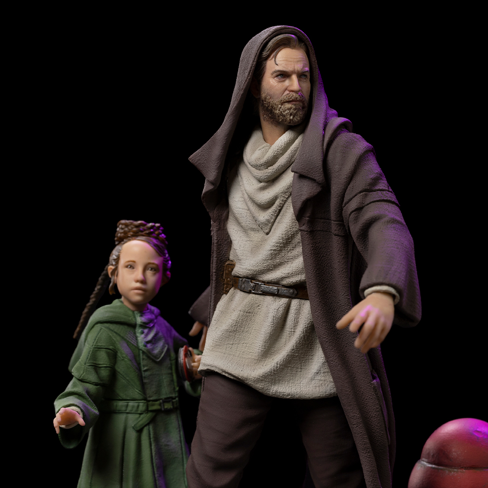 Фильм демонстрирует невероятный реализм и верность чертам актеров Эвана Макгрегора и Вивьен Лиры Блэр, сыгравших соответственно Оби-Вана и Лею, и создан на основе оригинальных отсылок, с детальным воспроизведением сцены вплоть до мельчайших деталей. Маленькая Лея привезла с собой своего игрушечного дроида женского пола L0-LA59. с парой маленьких крылышек по прозвищу Лола, дань уважения птице по имени Лола, которую в детстве любила актриса Кэрри Фишер (классическая взрослая принцесса Лея). Эта роскошная статуэтка была впервые представлена на выставке D23 Expo 2022, где Iron Studios также представила ее в рамках своей глобальной лицензии на "Звездные войны". Это первая статуэтка Iron Studios, созданная по мотивам мини-сериала "Звездные войны: Оби–Ван Кеноби" от стримингового сервиса Disney+, разработанного Lucasfilm, который рассказывает о приключениях мастера-джедая спустя 10 лет после "Звездных войн: Эпизод III - Месть ситхов".