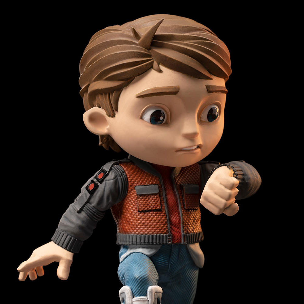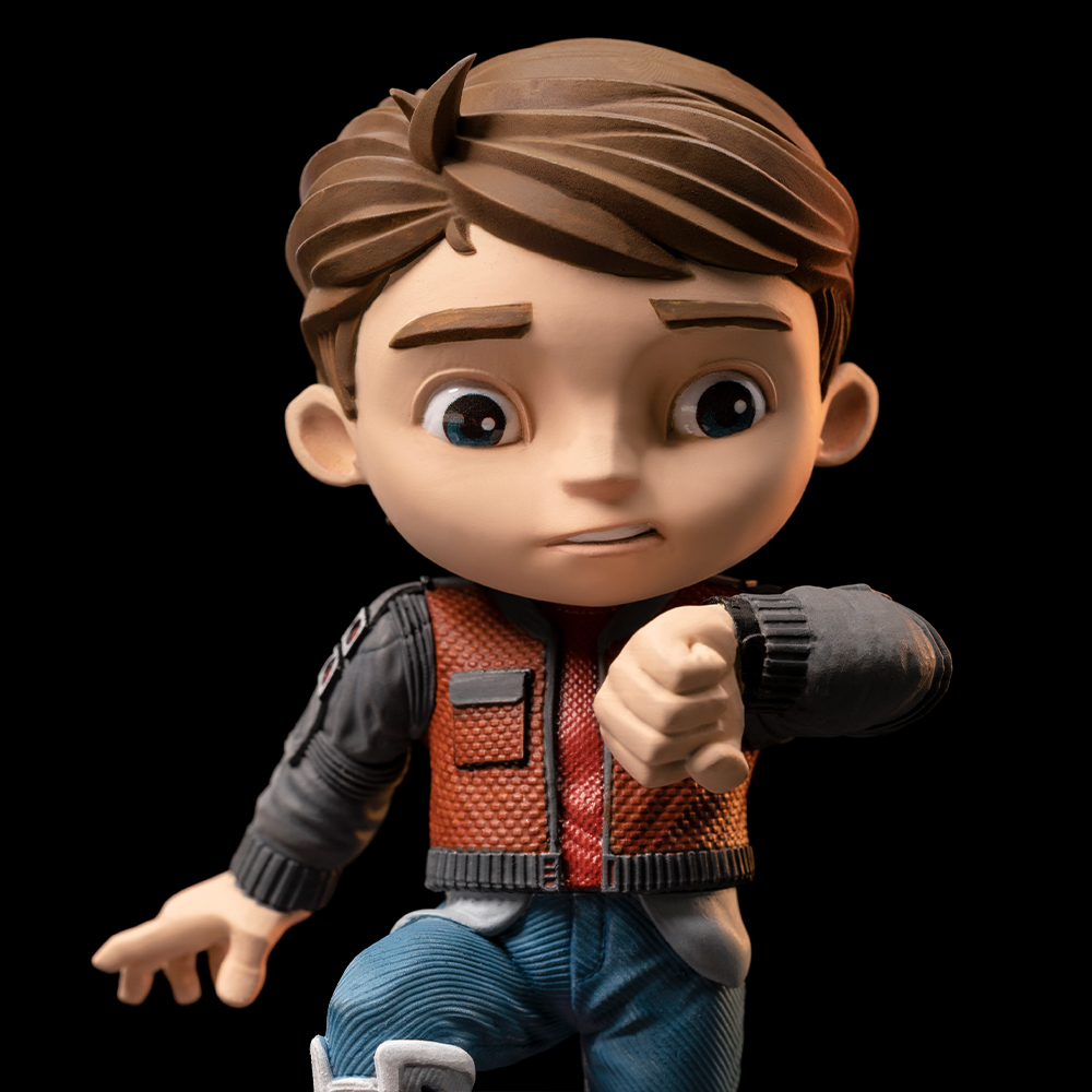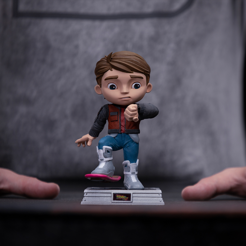 Студия Iron studios представляет статуэтку “Марти Макфлай - Назад в будущее, часть II", выполненную в своем все более любимом, восхваляемом и коллекционированном стиле игрушечного искусства. - MiniCo”, впервые представленный Iron Studios в таком формате, на подставке с логотипом фильма спереди, вдохновленной второй частью культовой кинотрилогии.