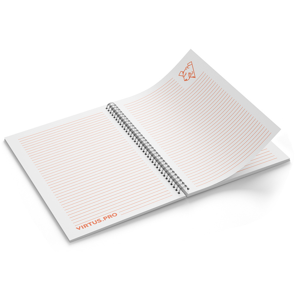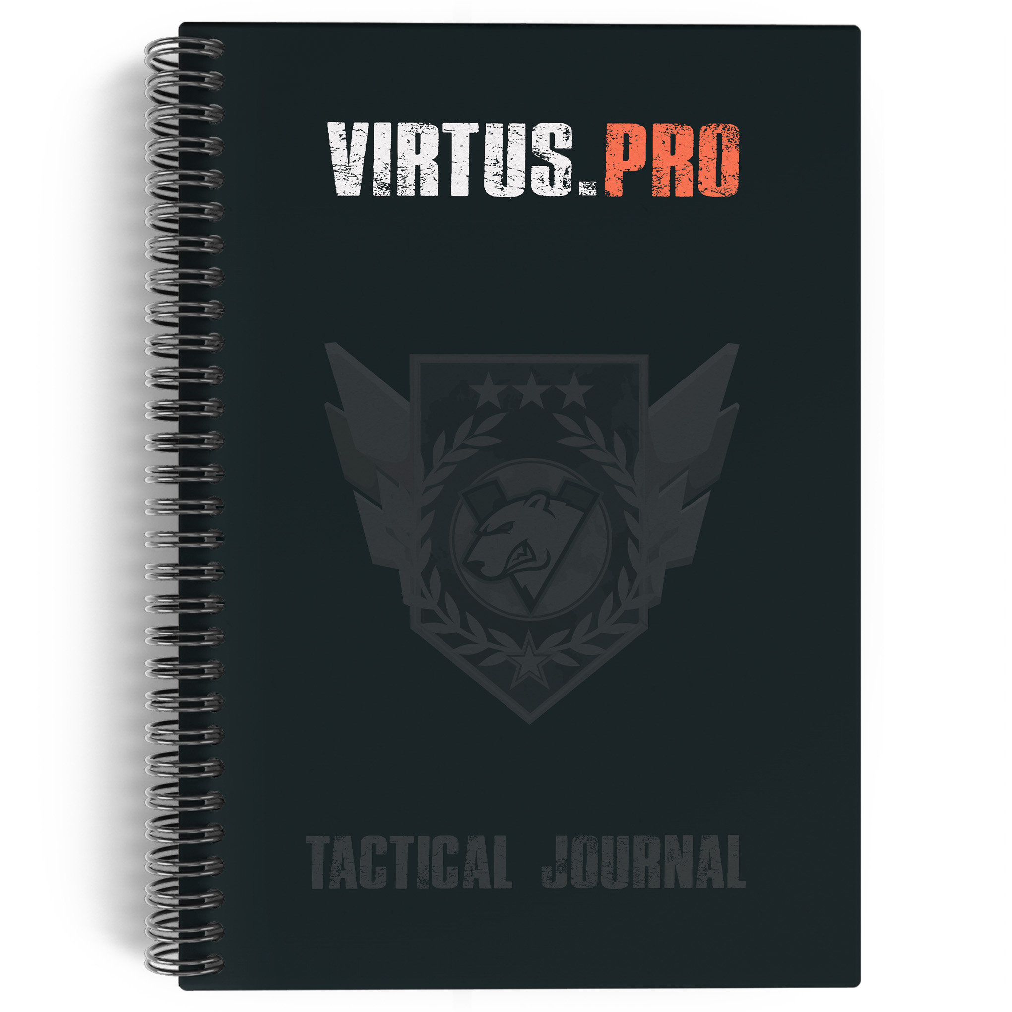 Стильный блокнот Virtus.pro Tactical Journal — идеальный выбор для фанатов киберспорта, студентов и всех, кто ценит порядок и вдохновение в записях. Плотная черная обложка с логотипом Virtus.pro и спиральным переплетом делает блокнот удобным и долговечным. Внутренние страницы оформлены в фирменных цветах команды, с тематическим дизайном для заметок и целей.