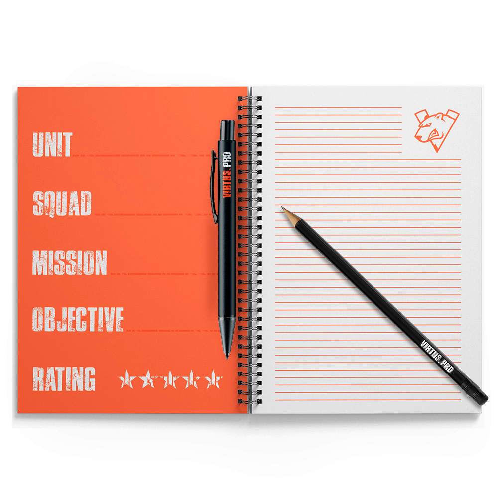 Набор стильной канцелярии с логотипом Virtus.pro — отличные аксессуар для поклонников киберспорта и всех, кто ценит минимализм и качество. Отличный подарок фанату команды или стильный аксессуар для работы и учебы.