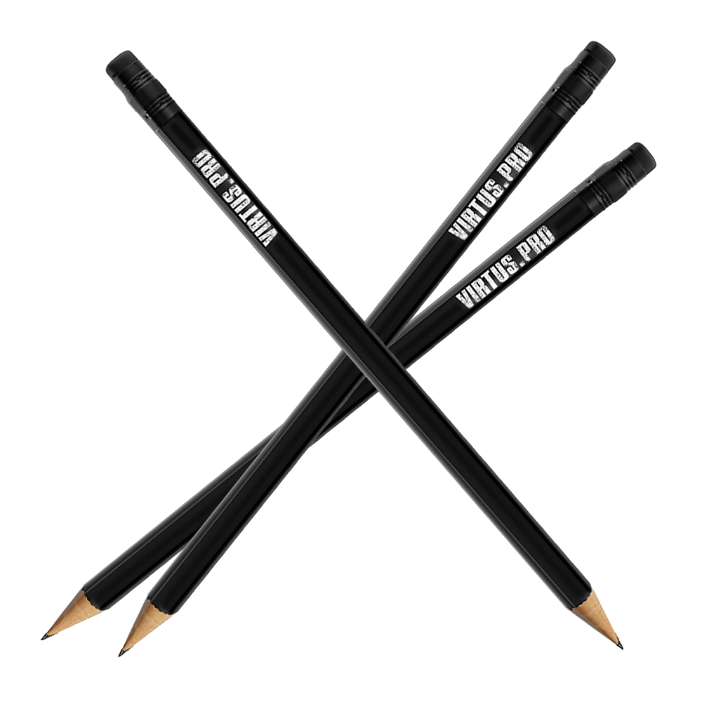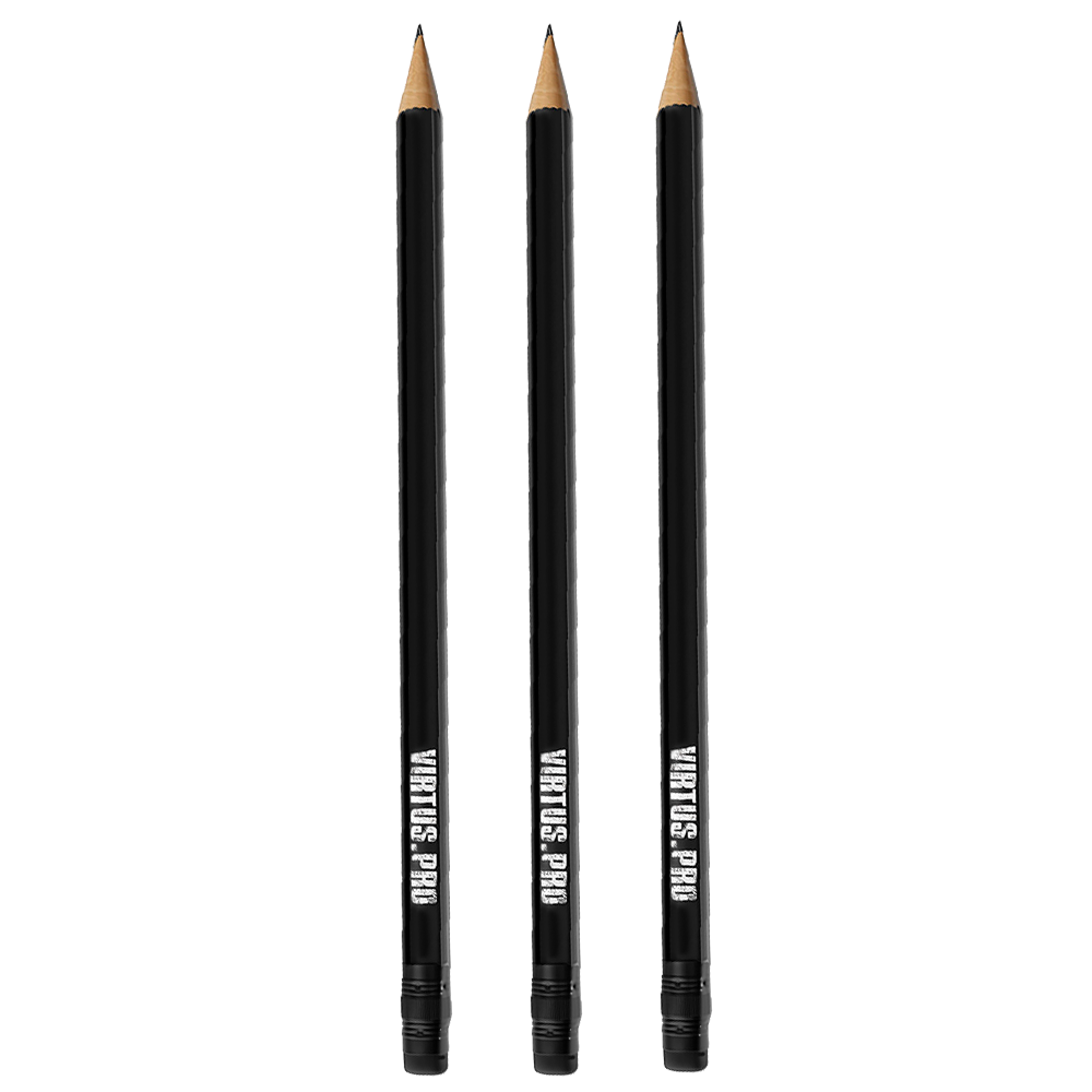 Набор стильных черных карандашей с логотипом Virtus.pro из трех штук — отличный аксессуар для поклонников киберспорта и всех, кто ценит минимализм и качество. Карандаш дополнен стойкой белой надписью VIRTUS.PRO. Идеально подходит для повседневных заметок, учебы или в подарок фанату команды.