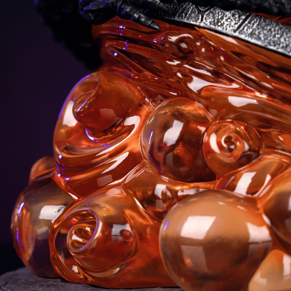 В основании статуэтки с любовью воссозданы знаковые элементы оригинальной карты: значения Атаки и Здоровья, а также драгоценный камень редкости — дань уважения культовому дизайну Hearthstone.